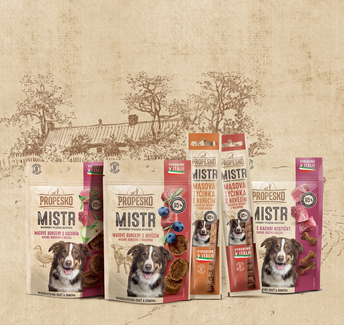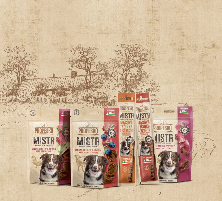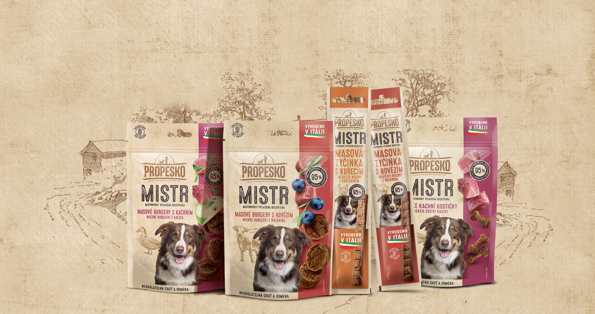 Za věrnost, za poslušnost i za to, jak vám umí spravit náladu, si váš pes zaslouží jen to nejlepší – neodolatelné pamlsky Propesko Mistr plné masa.